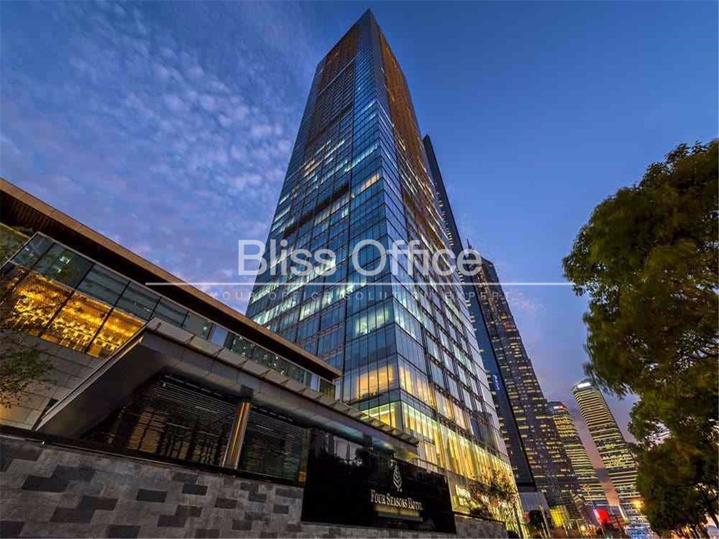 该大厦由三部分组成:具有国际一流品质的甲级写字楼商务中心、190个房间的高星级四季酒店和位于顶层的60套上海豪华的四季汇公寓。